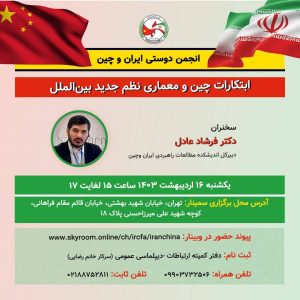 در ادامه برگزاری سلسله سمینارهای تخصصی از سوی انجمن دوستی ایران و چین پیرامون موضوع های مختلف مرتبط با این کشور، سمیناری با عنوان “ابتکارات چین